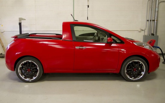 最近,幾個(gè)日產(chǎn)的美國(guó)工程師搞出了一件看起來(lái)很可愛(ài)的車(chē),他們把一輛聆風(fēng)電動(dòng)車(chē)改裝成了一輛小皮卡。