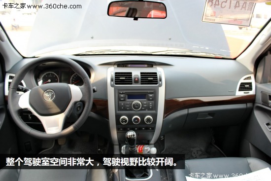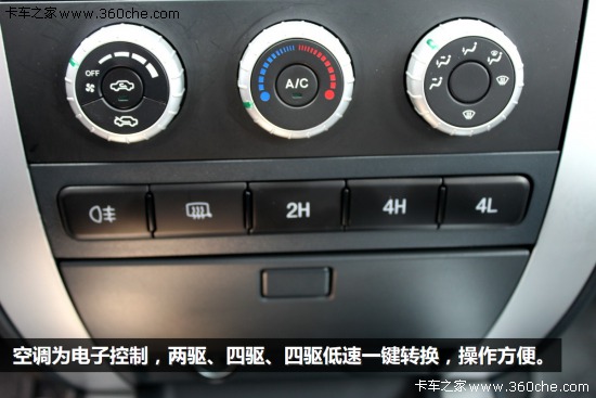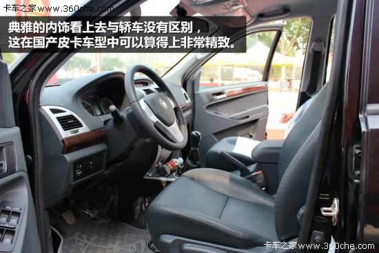 典雅的內(nèi)飾看上去與轎車沒有區(qū)別,這在國產(chǎn)皮卡車型中可以算得上非常精致了。中控臺設(shè)計簡潔大方,單獨設(shè)置時間顯示屏,CD機和收音機共用一個顯示屏。空調(diào)為電子控制,三個旋鈕的設(shè)計操作起來比較方便。