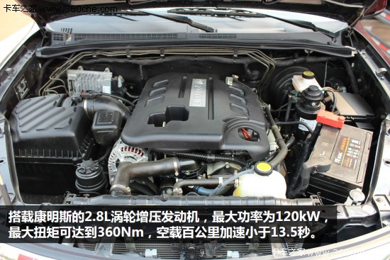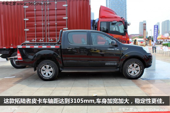 展出的這款拓陸者軸距達(dá)到3105mm,車身和空間加寬加大,穩(wěn)定性更佳。采用ABS+EBD雙安全氣囊和高強度車身結(jié)構(gòu),提升主被動安全。搭載康明斯的2.8L渦輪增壓發(fā)動機,最大功率為120kW,最大扭矩可達(dá)到360Nm,空載百公里加速小于13.5秒。