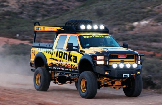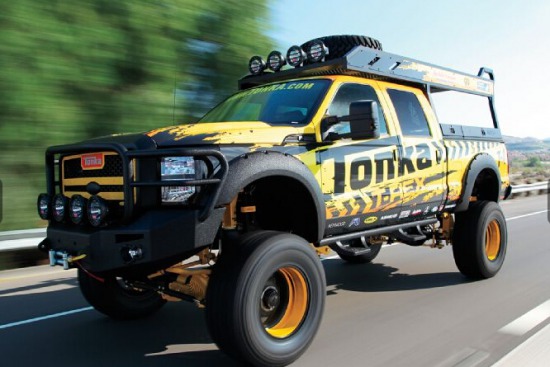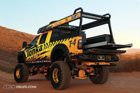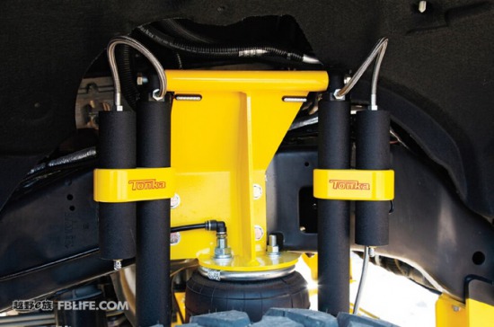 眼前這輛Tonka版福特皮卡正式為這些長大了的男孩子準(zhǔn)備的最好的玩具,這輛2013款福特F-250SuperDuty首先換上了Kelderman出品的8-10英寸空氣懸掛套件獲得一個(gè)高大威猛的基礎(chǔ),Accuair控制系統(tǒng)能夠在車內(nèi)對懸掛系統(tǒng)輕松操作。Tonka品牌的經(jīng)典黃色涂裝也成為這輛車的主題色,懸掛組件和AmericanForce輪圈也一并采用了黃色涂裝,輪胎選擇了ToyoOpenCountryM/T。