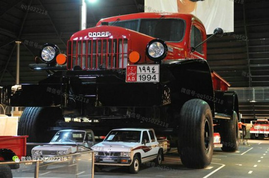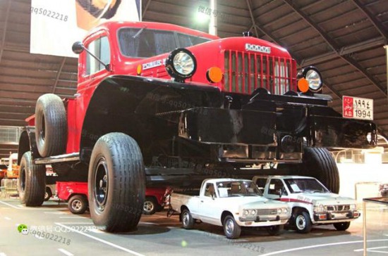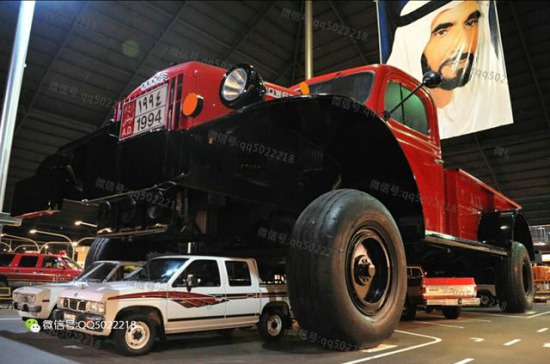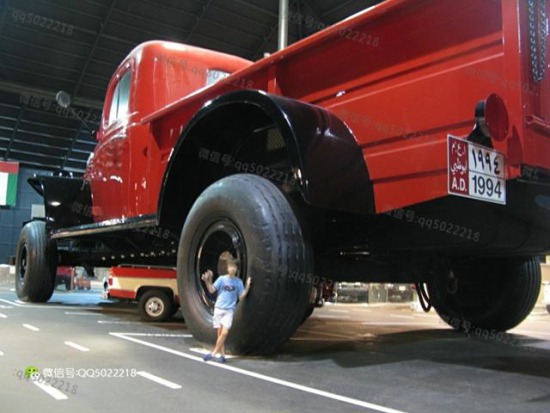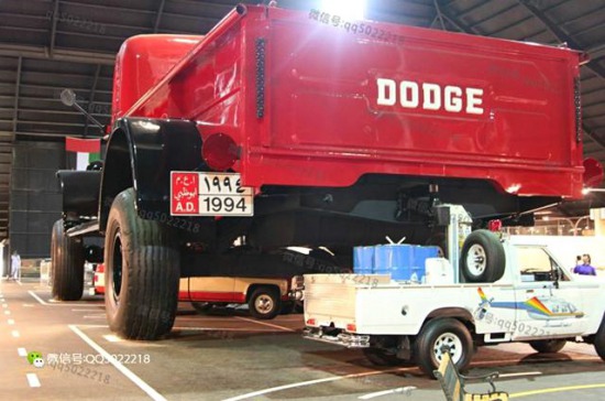 上世紀(jì)50年代打造的道奇車(chē)因?yàn)樘罅,?dāng)時(shí)在阿布扎比的沙漠打造的。車(chē)主就是圖片上的人。似乎還沒(méi)有輪胎的一半高,整車(chē)占地面積200平方米,駕駛艙前70平方左右,后130平方左右。