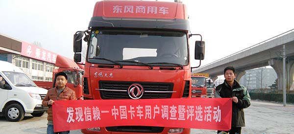此時,申通快遞北京分公司車隊長麻宏亮走過來對中國卡車網(wǎng)記者說道:“對!天龍是我們這的主干將,我們有400多輛運輸車,一半以上都是東風天龍,不僅有 9米6載貨車還有6×2、6×4半掛牽引車。”