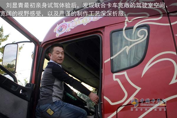 在經(jīng)過一段時間的網(wǎng)上關(guān)注后,當(dāng)?shù)氐慕?jīng)銷商告訴劉顯青,聯(lián)合卡車已經(jīng)入駐青島。欣喜的劉顯青在見到聯(lián)合卡車的真面貌,并親身試駕體驗(yàn)后,被聯(lián)合卡車寬敞的駕駛室空間、寬闊的視野感受,以及嚴(yán)謹(jǐn)?shù)闹谱鞴に嚿钌钫鄯?/p>