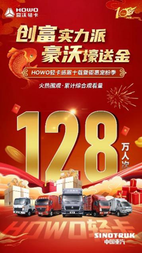 前不久,為慶祝中國重汽HOWO輕卡上市十周年,中國重汽推出“創(chuàng)富實(shí)力派 豪沃壕送金——HOWO輕卡感恩十載暨鉅惠寵粉季”活動(dòng),以空前力度,引來眾多客戶的熱情參與。在活動(dòng)直播期間,手機(jī)、冰箱以及加油卡等“錦鯉大獎(jiǎng)”真情放送,令人無比期待的特等獎(jiǎng)——HOWO小帥輕卡錦鯉定制版,被甘肅車主楊師傅與山東車主寧師傅摘得,收獲驚喜大獎(jiǎng)讓他們歡欣雀躍;HOWO小帥輕卡的超高品質(zhì),更是為兩位車主的運(yùn)輸生活增光添彩。