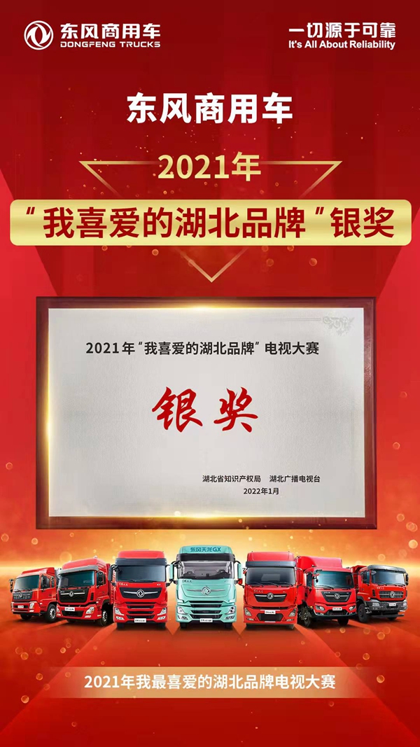 擦亮荊楚品牌,助推高質(zhì)量發(fā)展。1月25日,由湖北省知識產(chǎn)權(quán)局、湖北廣播電視臺聯(lián)合主辦的2021年“我喜愛的湖北品牌”電視大賽決賽落下帷幕。經(jīng)過現(xiàn)場專家、媒體評委評分,以及場外網(wǎng)絡投票,最終角逐出金銀獎獲獎品牌,東風商用車榮膺本屆大賽銀獎。