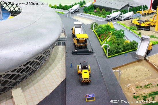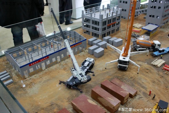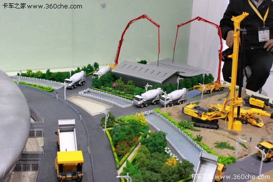 用沙盤來展示自己的產(chǎn)品線,即生動形象,又具有極佳的觀賞價值。不過,或許只有像徐工、中聯(lián)中科等這種具備完整產(chǎn)品家族的廠商才能以這種方式來展現(xiàn)吧。