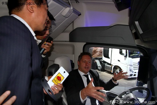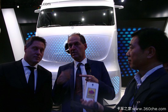 戴姆勒在2014漢諾威國際車展的首日現(xiàn)場舉行了媒體見面會,梅賽德斯-奔馳全球設(shè)計總監(jiān)瓦格納先生在未來卡車的展臺,為大家詳細介紹無人駕駛車的特點。并盛情邀請卡車之家的小編,獨家進入這臺夢幻之車的駕駛室內(nèi),感覺神秘之車的獨特魅力。