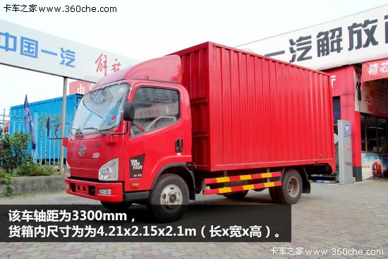 J6F采用JL01采用的JH01單排駕駛室,前臉延續(xù)了解放J6系列的造型,堪稱名副其實的小J6。該車駕駛室寬度為1895mm,軸距為3300mm。