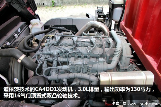 該款J6F采用的是大柴道依茨CA4DD1發(fā)動機,該發(fā)動機采用16氣門頂置雙凸輪軸,配合電裝的高壓共軌系統(tǒng),燃油經(jīng)濟性表現(xiàn)出色,結(jié)合POC+DOC的后處理技術(shù),該車滿足國四排放標(biāo)準(zhǔn),與之匹配的是CA5T系列的長齒五檔變速箱。